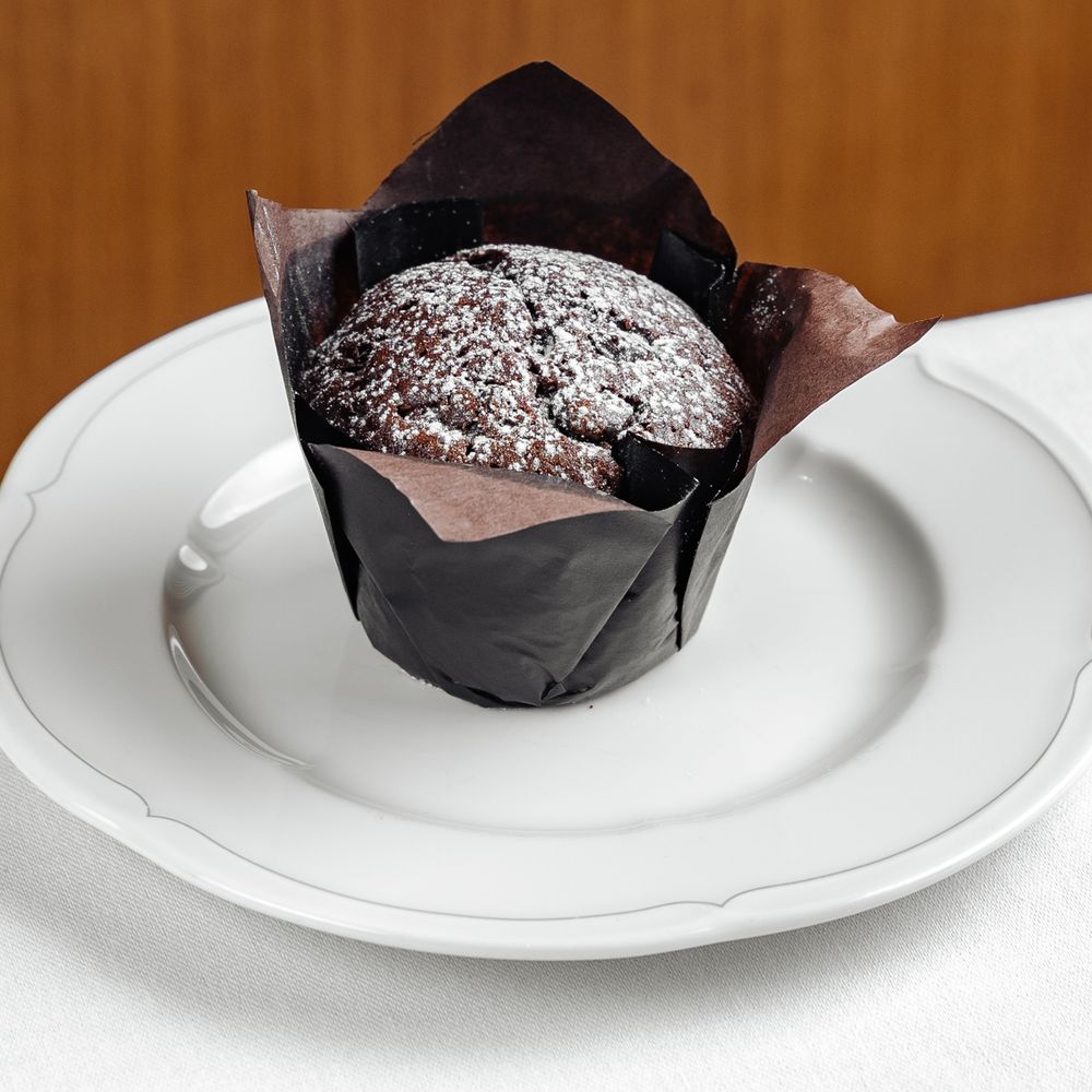 Шоколадный маффин с шоколадным кремом (Тростниковый сахар, яйцо, молоко, растительное масло, мука, какао, разрыхлитель, сода, соль, шоколадный крем)