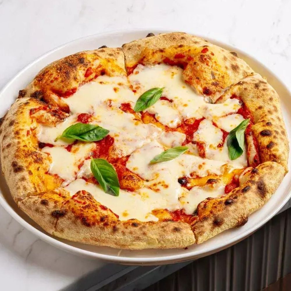 Неаполитанская пицца с пышным бортиком и тонкой основой (мука из мягких сортов пшеницы, дрожжи живые, сухая итальянская закваска, вода, соль), томатный соус с добавлением орегано, базилика и оливкового масла, сыр моцарелла (24 см)